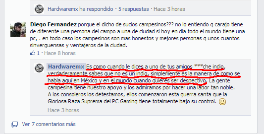 Si se ve bastante mal ese tipo de comentarios en una pagina de Facebook que se supone tendria que ser seria, si hwmx fuera un sitio grande como toms hardware por ejemplo ya estaria el flame a todo lo que da por comentarios asi.