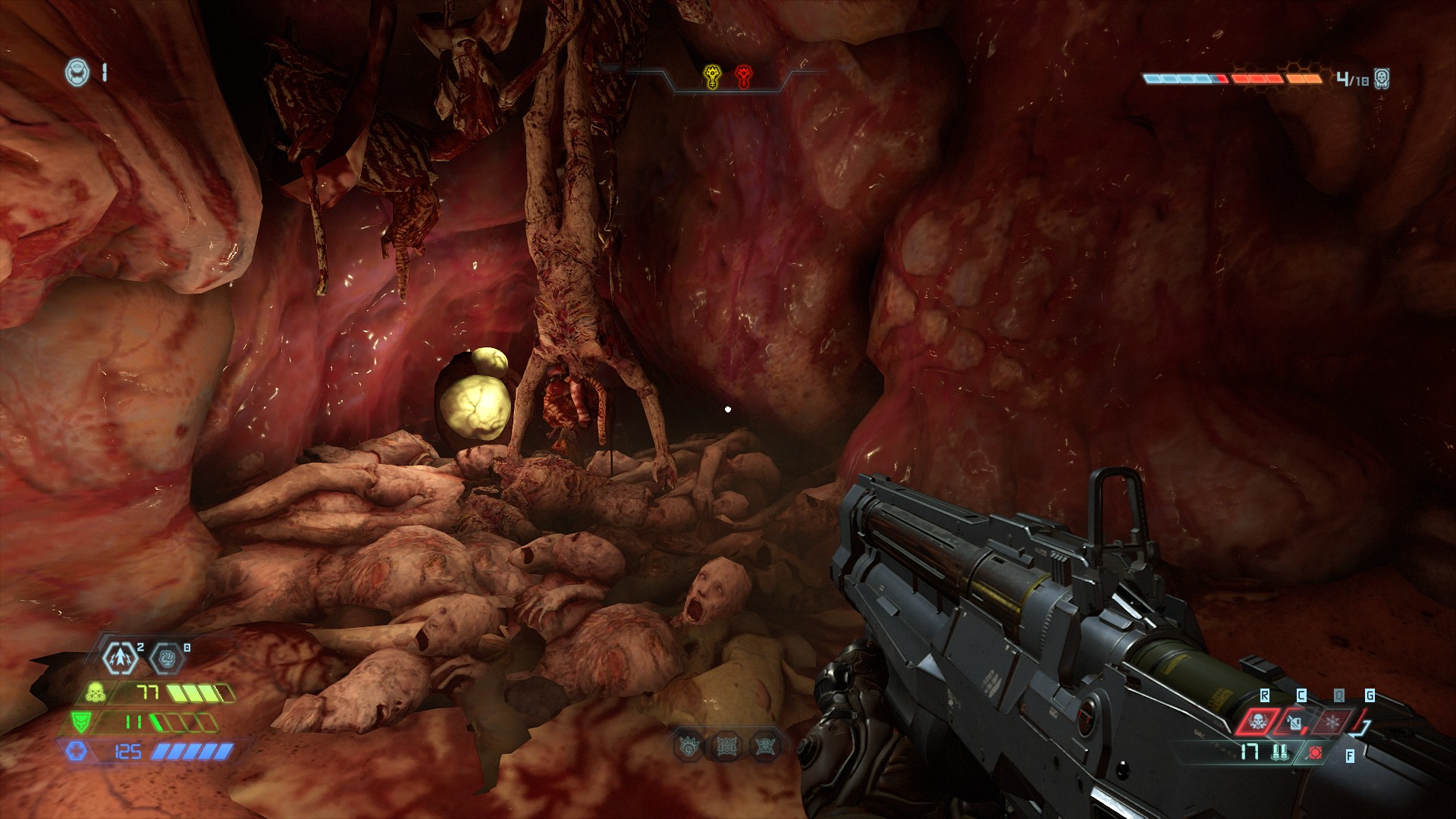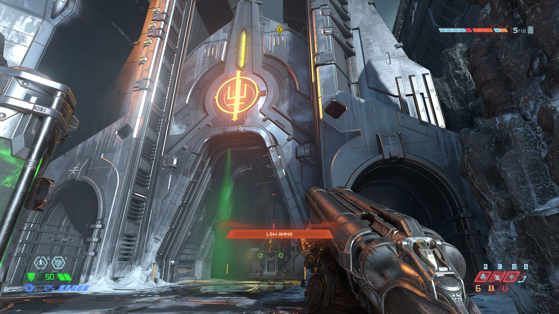 Apagué la brújula y la otra mugre que te dice a dónde ir y no he tenido problemas para orientarme utilizando solo el mapa. Algunos enemigos son unos verdaderos hijos de suchi (en Ultraviolencia) y la cereza del pastel son las "DOOM Gates": niveles ocultos donde hay que sobrevivir la miríada de enemigos que aparece, si se te acaban las vidas hay que empezar de nuevo. Salir vivo de una de estas puertas te deja cansado pero muy satisfecho.