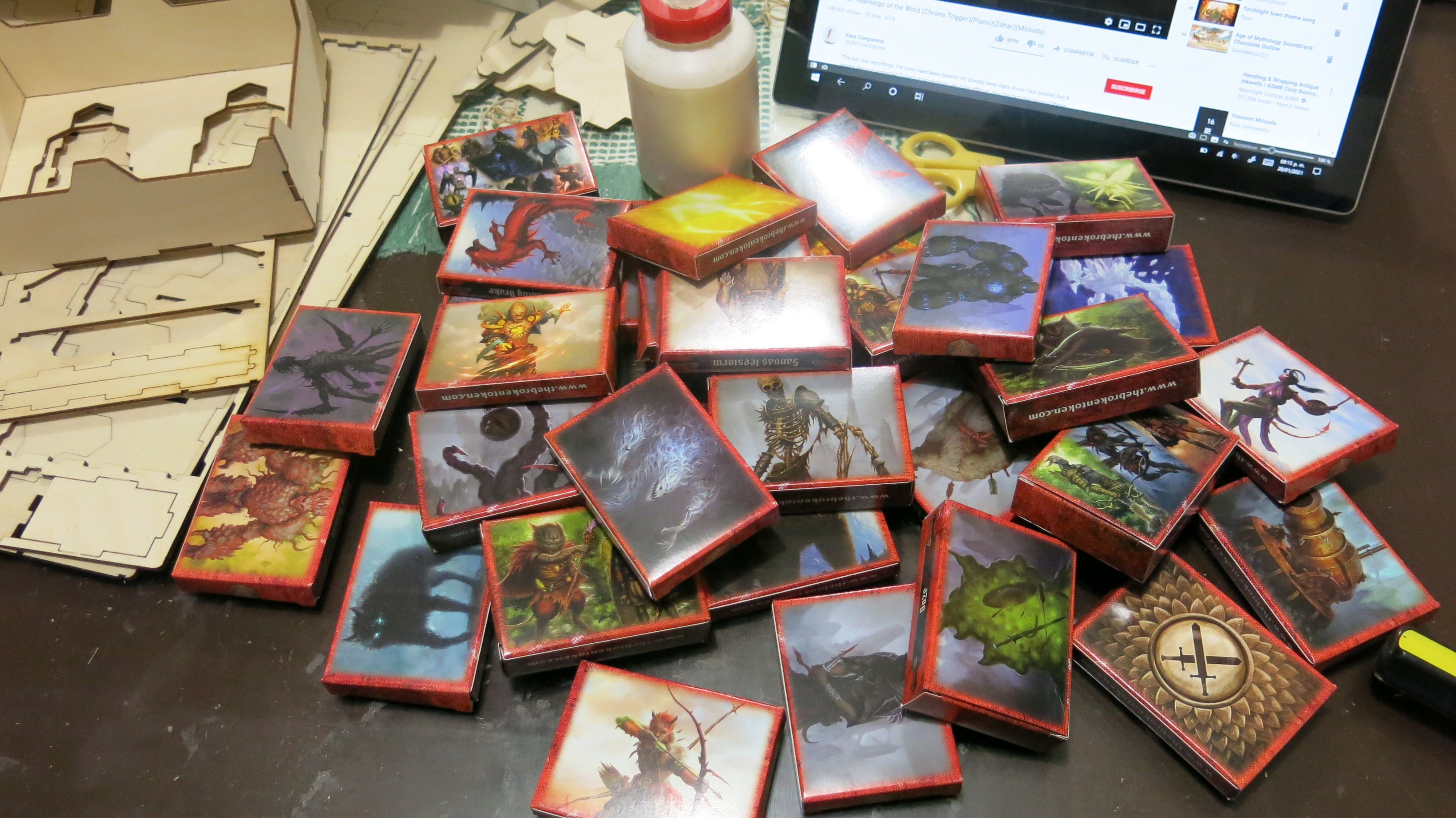 Todas las cajitas para tarjetas y miniaturas de monstruos, son 32 cajas