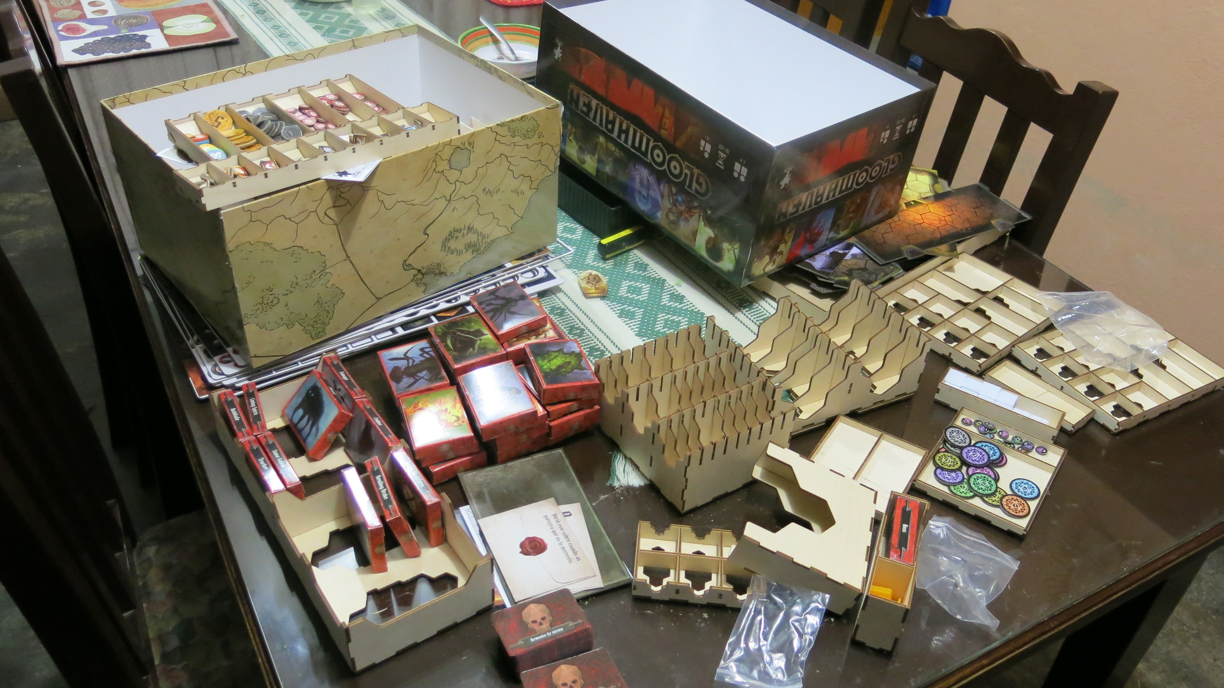Al final, la caja del juego que originalmente pesaba unos 6 kilos pesa ahora unos 8 kilos, pero todo cabe bien adentro de ella. Sinceramente sería una pesadilla preparar las campañas sin el organizador. Ya jugamos la primera mis padres y yo y la completamos exitosamente, aunque morimos yo y mi madre. Mi padre perseveró en su avance y logró eliminar a los últimos monstruos.
