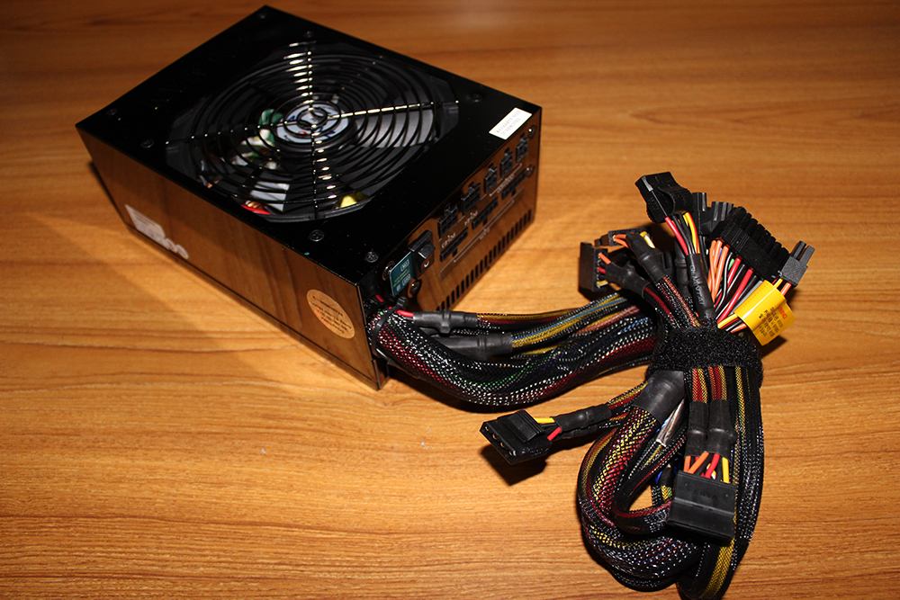 Muy bonita y powerosa PSU semimodular, con una pintura en acabado brillante, un par de curiosos heatpipes para enfriarla y un silencioso ventilador de unos 14cm (review de 3DGameMan de una de 1000 ahi arribita).