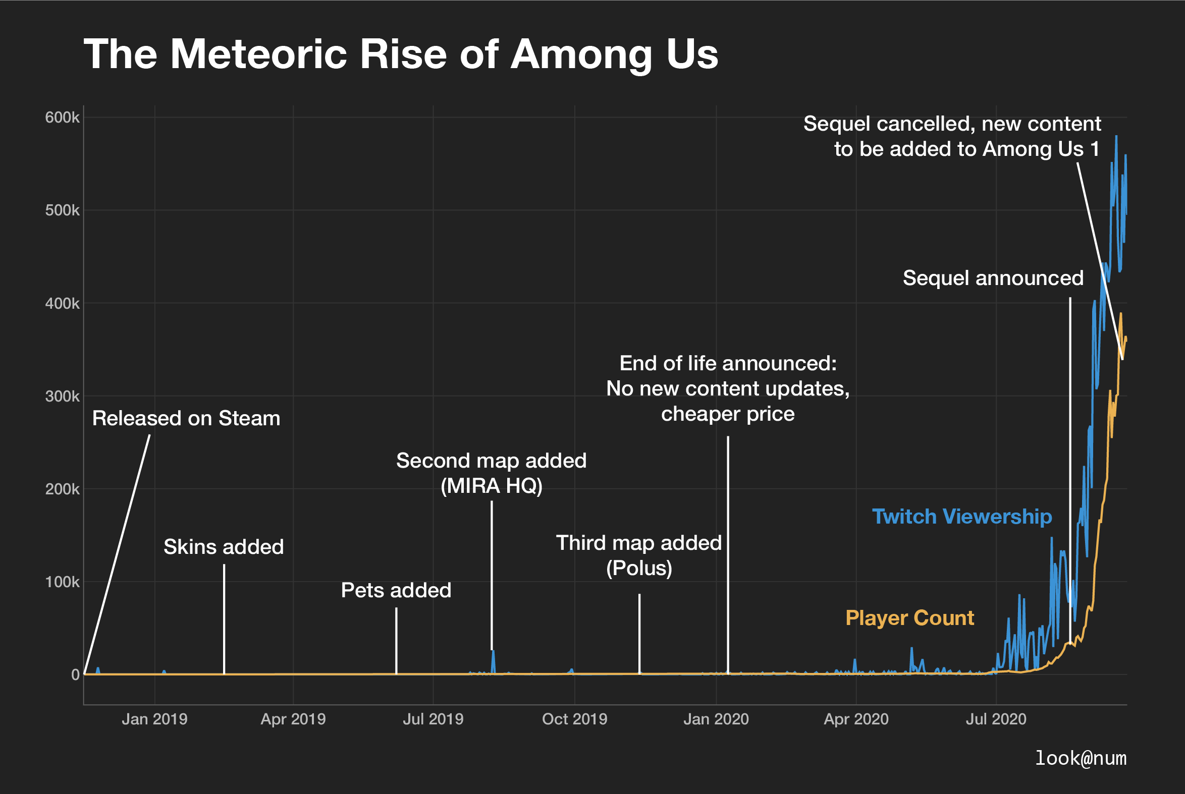 Resulta que Among us ha estado entre nosotros por más de dos años desde su lanzamiento, en el cual apenas unos cuantos cientos de jugadores lo conocían, hasta que agarró fortaleza gracias a los streamers y ahora todos lo conocen: