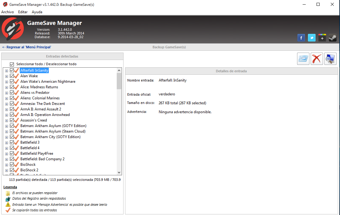 Pues el asunto es que al parecer jala muy bien, me detecto todos los jueguitos que tenia instalados y de diferentes clientes (Steam, Origin y creo Uplay); de todos me hizo el respaldo de mis guardados, ademas de que creo puedes restaurar de uno por uno o de lleno, en fin muy buena herramienta con una interface mu sencilla y amigable, dejo capturas: