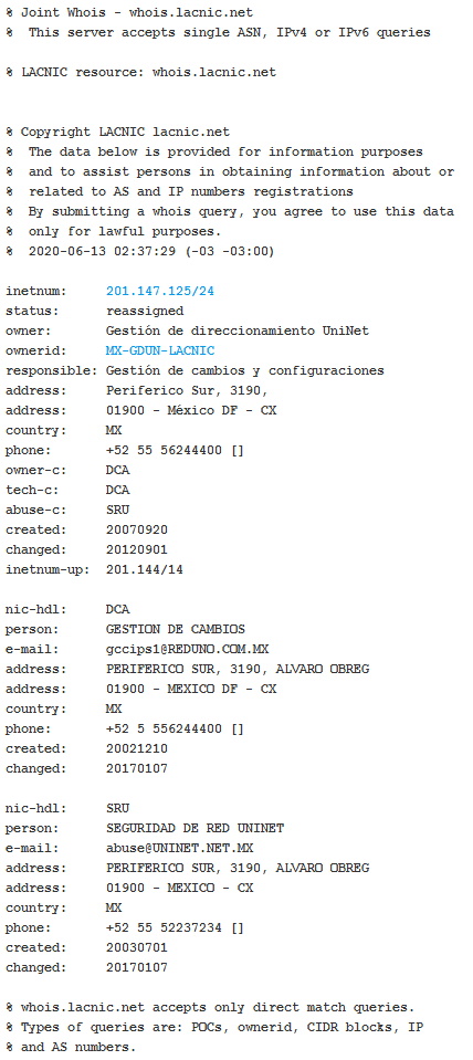 Y a todo esto, ¿a quien pertenece esa extraña IP 201.147.125.145 que los DNS de Telmex regresan tanto en IPv4 como en IPv6 ?