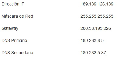 DNS Primario: 189.233.1.5