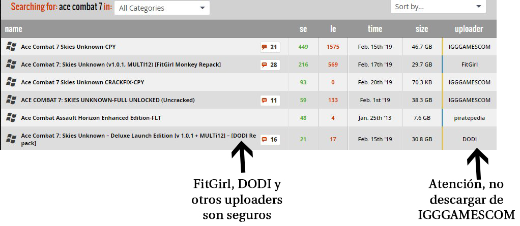 En ambos podrás encontrar torrents de miembros conocidos. Ejemplo de estos son los torrents de EMPRESS, CODEX, SKIDROW, HOODLUM, RELOADED, SiMPLEX, DARKSiDERS, y PLAZA.