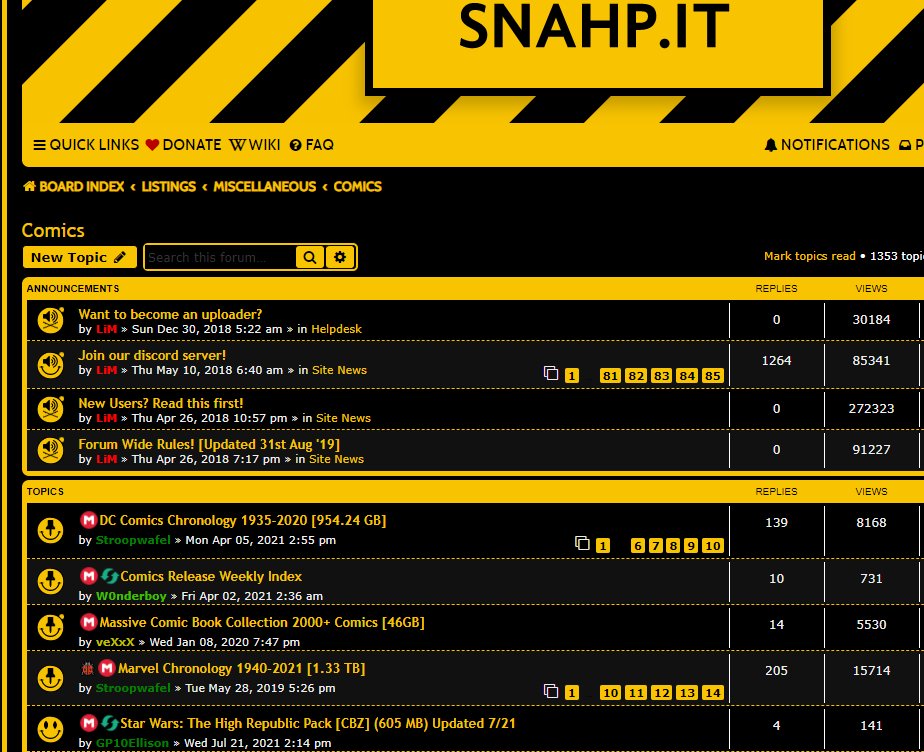 Una tercera página donde pueden encontrar aún más comics es el foro de snahp.it , pero nuevamente menciono, necesitan invitación para entrar.