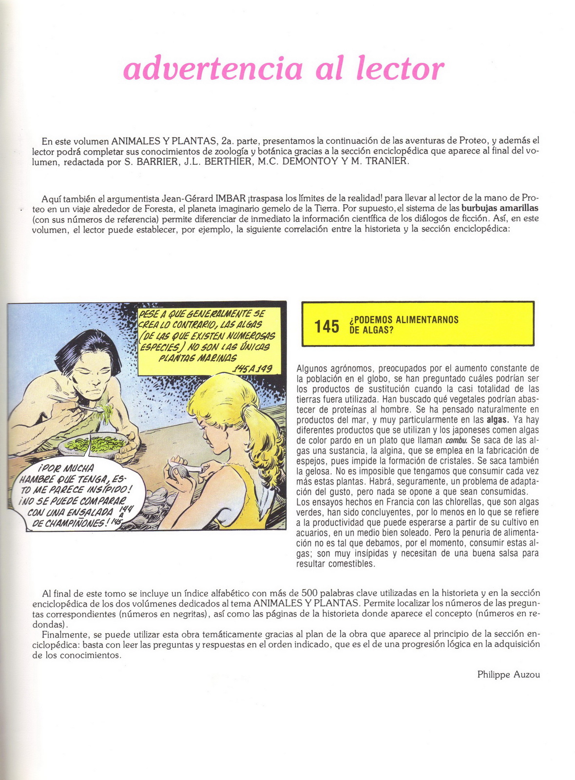 Le monde des connaissances, L'encyclopédie en bandes dessinées, al parecer el titulo original de esta obra en frances, es lo que se conocio en castellano como "Enciclopedia Cientifica Proteo", una serie de libros que trataban la ciencia en general, temas como el universo, el planeta, el ser humano y la vida misma, cuya particularidad que lo hacia especial, era que estaba tratada por medio de comics: contaban las aventuras de un ser androide llamado Proteo, que como el dios griego, era capaz de transfomarse en cualquier cosa; el asunto y lo curioso e interesante, era que durante estas, las menciones a diversos hechos eran lo comun y estaban marcados con un numero, que podias checar en la segunda parte del libro, ya que estaba dividido en dos, la parte del comic y la parte educativa, donde se explicaban todos aquellos puntos a los que se hacia referencia en las peripecias de o los personajes.