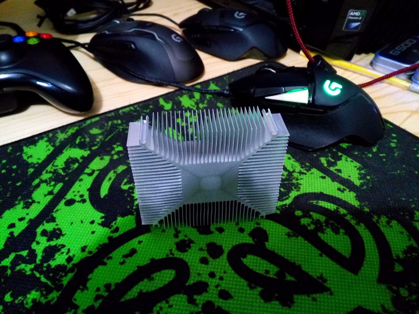 El disipador que lo estaba enfriando en ese momento, lleva un ventiladorcito de 6.5cm y este simple, pequeño y llano pedazo de aluminio (con su respectiva pasta Manhattan