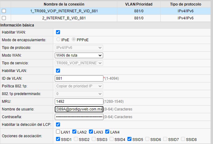 Les dejo imagenes de la configuracion de ambos modems a ver si estoy haciendo algo mal. El usuario de PPPoE tiene 19 caracteres seguido de @prodigyweb.com.mx
