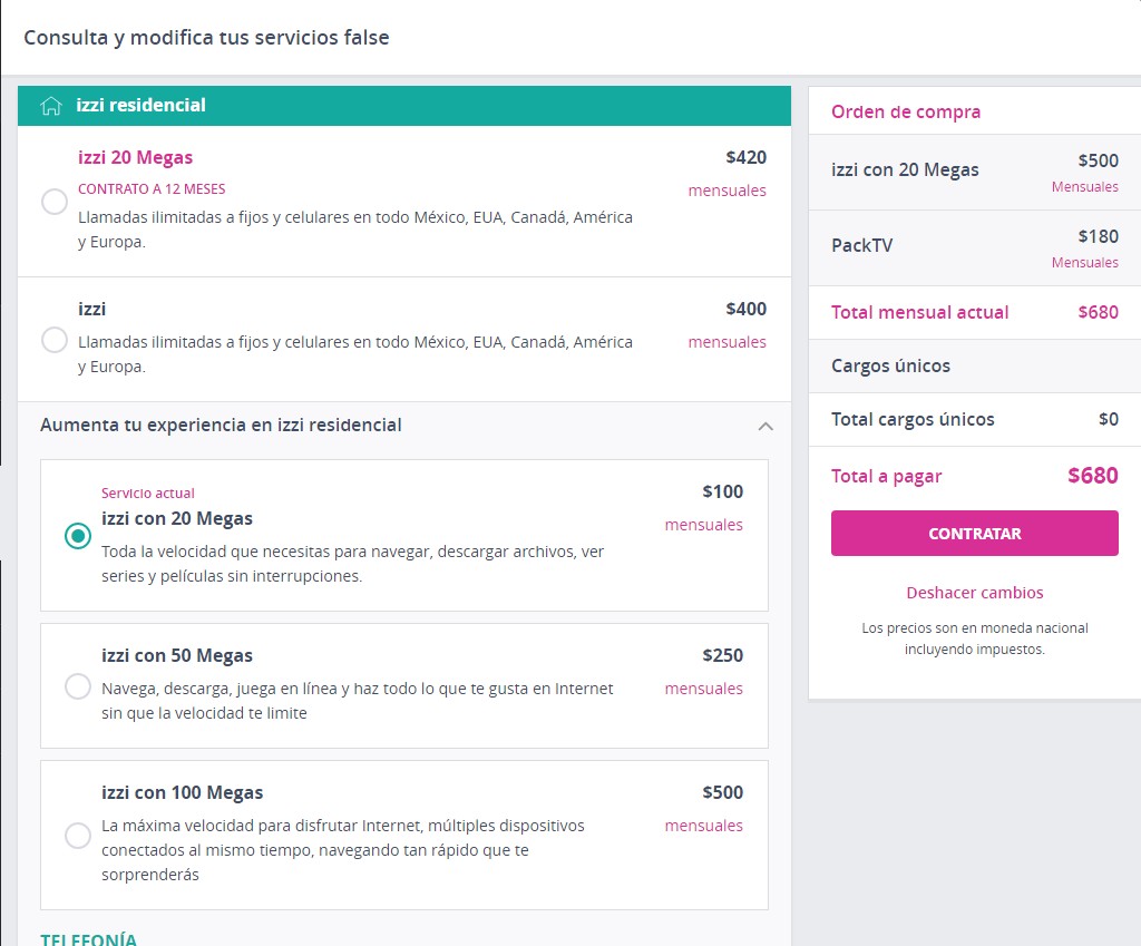 a pagar". luego en letras mas pequeñas abajo te viene "Plan +50Mbps +Plan 100Mbps" y te cobran lo extra por separado y luego otro "subtotal".