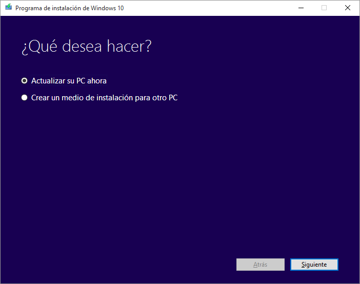2. Ejecuta la herramienta y selecciona la opción "Actualizar su PC ahora"