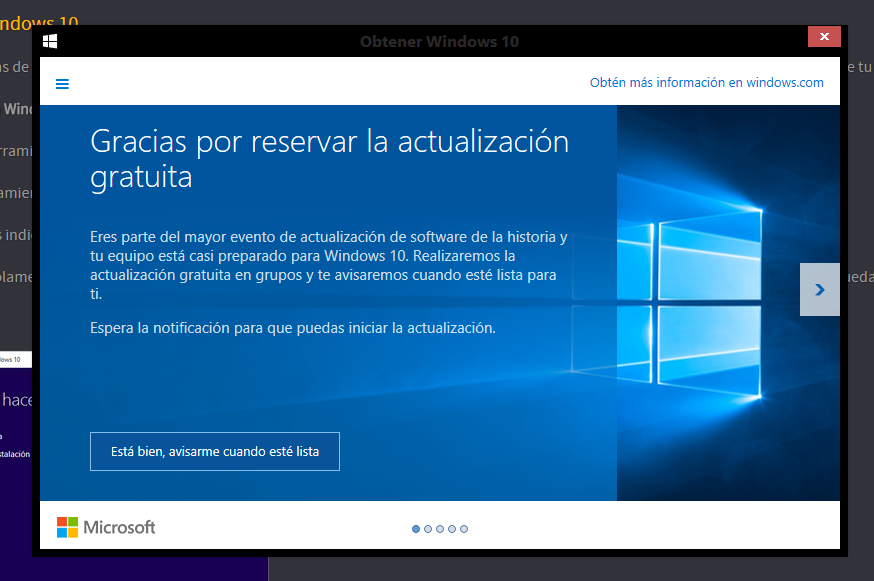 A mi la ventanita de actualizacion se me desaparecio (en la cual ya habia "apartado" el update) y el dia de hoy volio a salir, pero con esto: