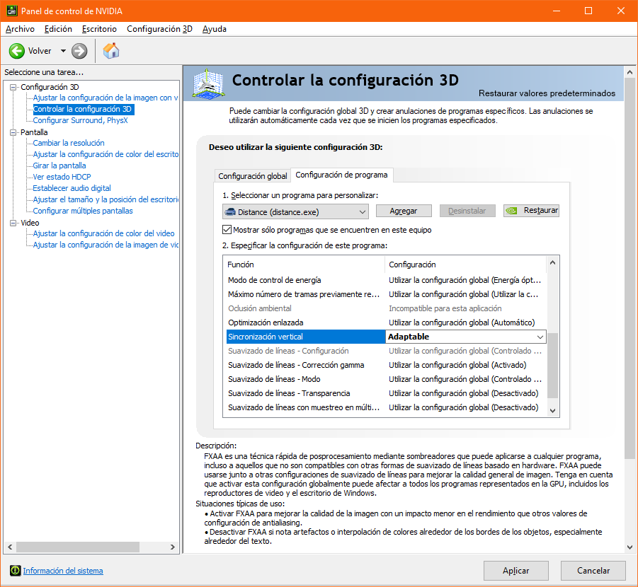 Pero algo que sí puedes hacer, si tienes una tarjeta Nvidia, es activar el adaptive-sync a nivel del driver, ya sea en general o por juego:
