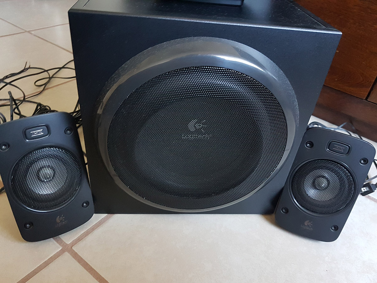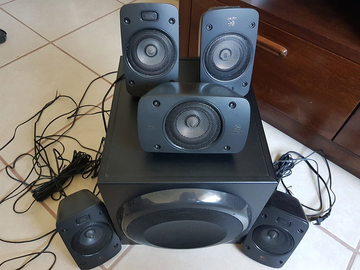 El Subwoofer tiene problemas de energía. Se puede reparar o hacer "bypass" para usar las bocinas como si fueran convencionales. (son estandard de 2 conectores).