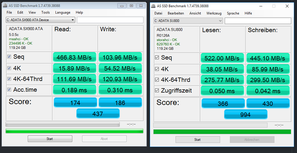 Lo noté apenas empecé a instalar Windows 10, el SX900 se tarda más de 30 minutos en copiar e instalar los archivos desde una USB. Este SU800 se tardó menos de 5 minutos. Ahora no sé si intercambiarlos entre mi desktop y laptop.