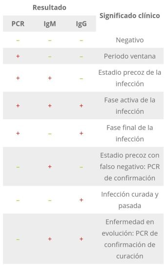 IgG = Anticuerpos de inmunidad (cuando ya se está venciendo la enfermedad)