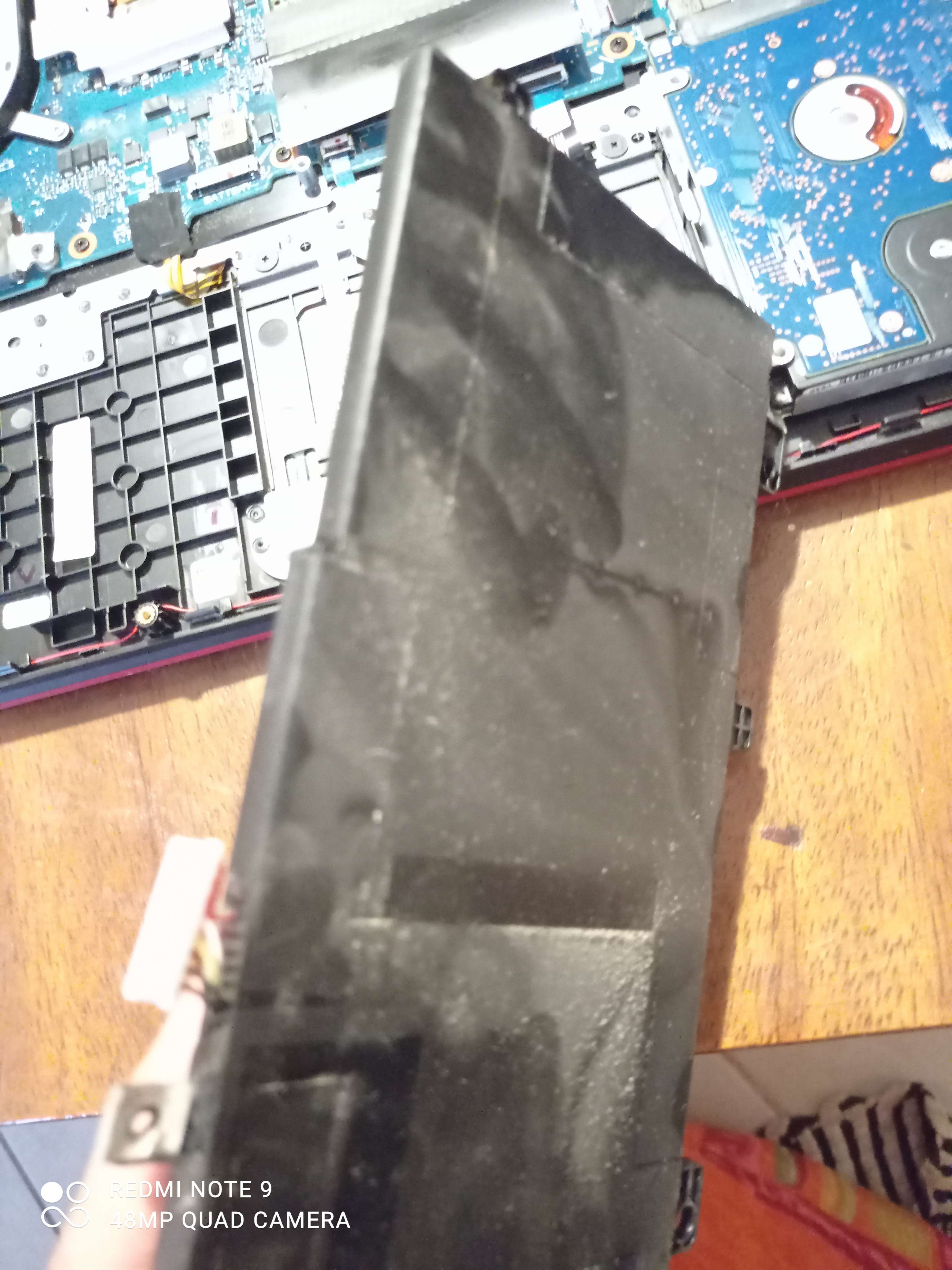 Primero se tiene que desconectar la bateria de la laptop jalando hacia con nosotros con cuidado, despues, en la parte de abajo esta agarrada con un plastico que si lo presionar y jalas la bateria sale.
