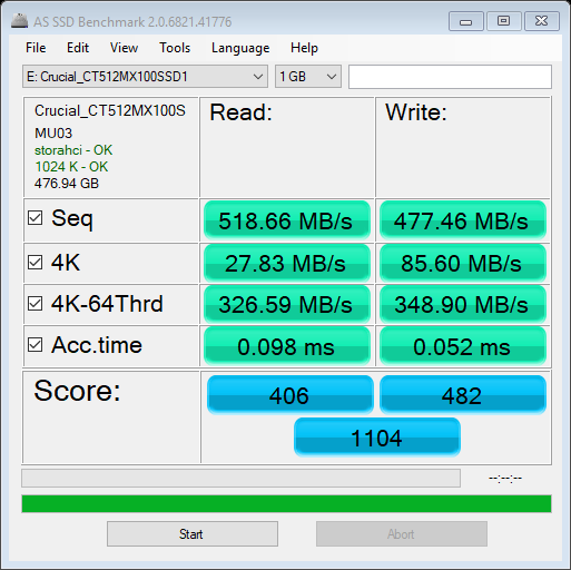 Por ser un SSD no deberías tener ninguna caida de rendimiento en ninguna de las graficas.