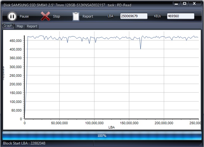 Yo para revisar si está madreado un disco uso HDDScan en modo verify, aunque en modo read también da buenos resultados y es más rapido. Usualmente lo uso para HDDs, mientras revisa el disco te da un grafico de rendimiento y otro grafico que te que calidad tiene el sector que acaba de leer, también hay un apartado donde te da un resumen de aquellos sectores que no tienen un performance optimo.