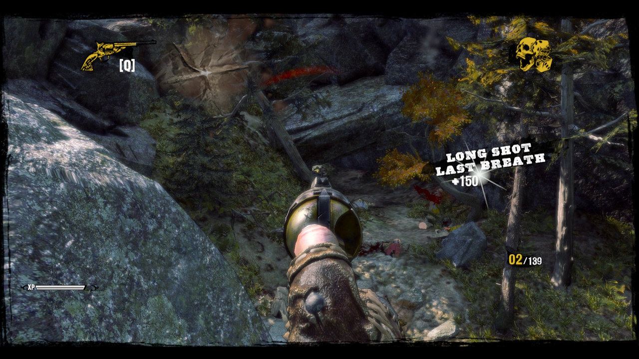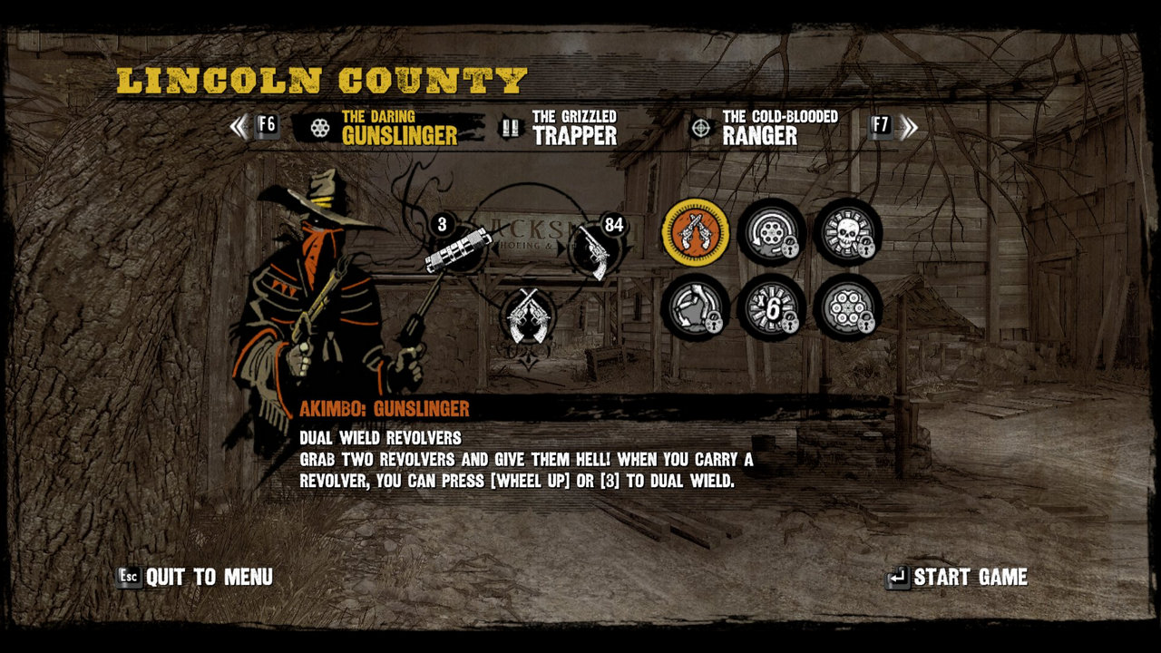 Todas las habilidades modifican algún aspecto de las mecánicas de juego. No solo son pequeñas mejoras a las cosas que ya existen. Por ejemplo, podemos recargar más rápido las armas, aumentar la cantidad de Concentración que ganamos con cada tiro a la cabeza o escopetazo de cerca que acertemos, incrementar al doble el número de municiones y poder disparar sin apuntar a los cartuchos de dinamita que lancemos. Son 36 habilidades.