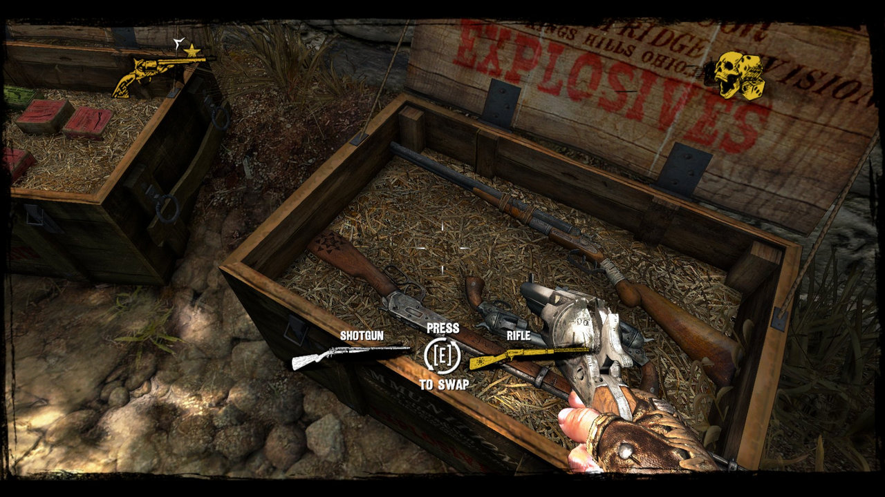 Tendremos a nuestra disposición varias armas, pistolas, rifles y escopetas. También obtendremos algunas versiones especiales que desbloquearemos conforme vayamos subiendo de nivel. Hay tres modelos de pistolas: la rápida de disparar y cargar pero poco poderosa (Quickshooter), la de características promedio en velocidad/poder (Sixshooter) y la pistola poderosa pero lenta (Ranger). Los rifles tienen gran potencia y puedes usarlos contra objetivos lejanos; en cambio las escopetas son muy poderosas pero solo a distancias cortas.