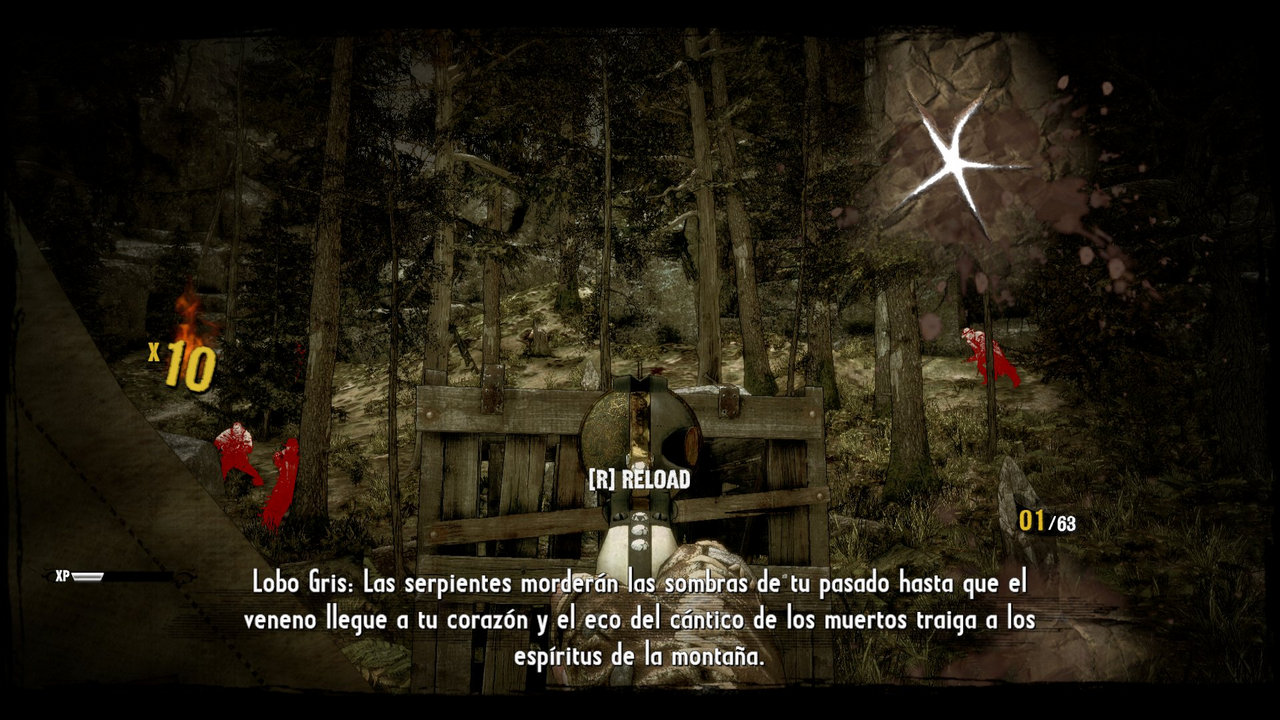 Durante nuestras aventuras a veces tendremos que resolver con gran velocidad de reflejos situaciones especiales que nos presente el juego, como son las emboscadas. Aquí el juego nos presenta un QTE para irle disparando a los enemigos. Yo no soy admirador de este tipo de mecánicas de juego pero son aceptables dentro del contexto de CoJ: Gunslinger. Si llegamos a fallar el QTE y tenemos cargado el Sense of Death puede que no sea nuestro fin, podremos eliminar a los enemigos como lo haríamos de forma habitual.