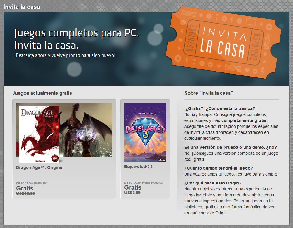 Y por si alguien no lo consiguio gratis en su momento, $0.64 usd el Battlefield 3 en Origin, ademas el BF4 en solo $9.99 usd y la edicion premium a $19.99 usd; tambien tienen el Plants vs Zombies Garden Warfare a $4.79 usd.