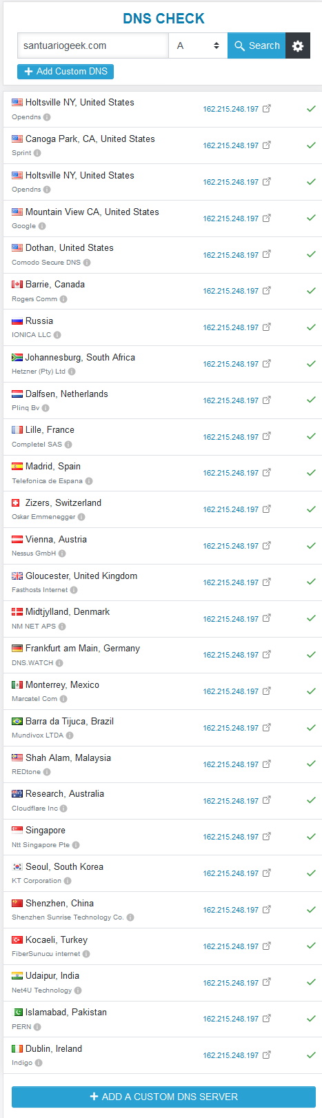 Pero si nos cambiamos al DNS de Google la IP es la correcta: