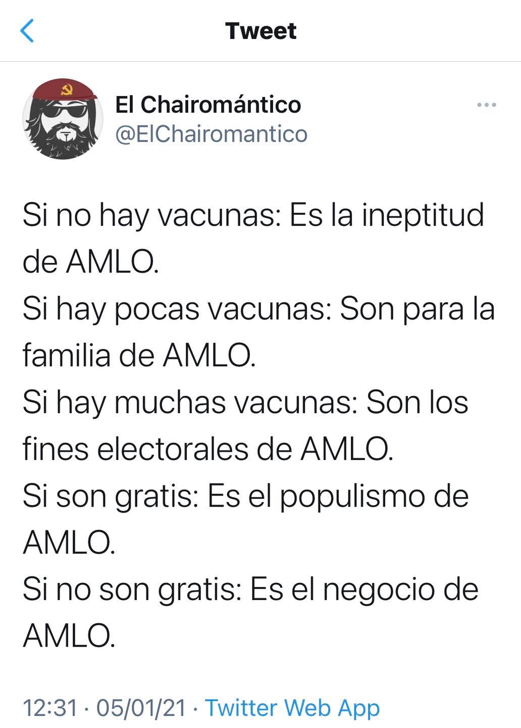 No hay manera de ponerlos feliz porque en muchos casos la consigna solo es quejarse por quejarse y todo por tener un odio ya personal contra AMLO.