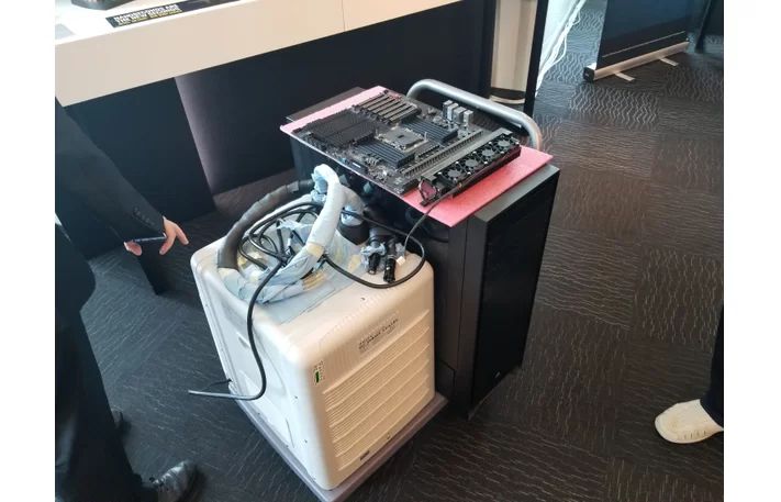 Así que al final la teoría es que en realidad no era más que un Xeon Platinum 8180 que renombraron y el cual mostraron como el "nuevo CPU de 28 núcleos", lo cual no es tan difícil de creer una vez que se ve lo profesional que lucía su grandiosa PC en la demostración con su sistema de enfriado a un lado metido a huevo.