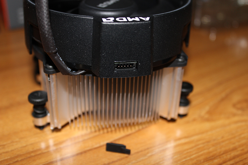 En las otras imagenes se aprecia el detalle del conector de este cable en el cuerpo del ventilador y por ultimo, la pasta termica preaplicada al disipador; la tipica "plastilina gris" que montan estos componentes de stock.