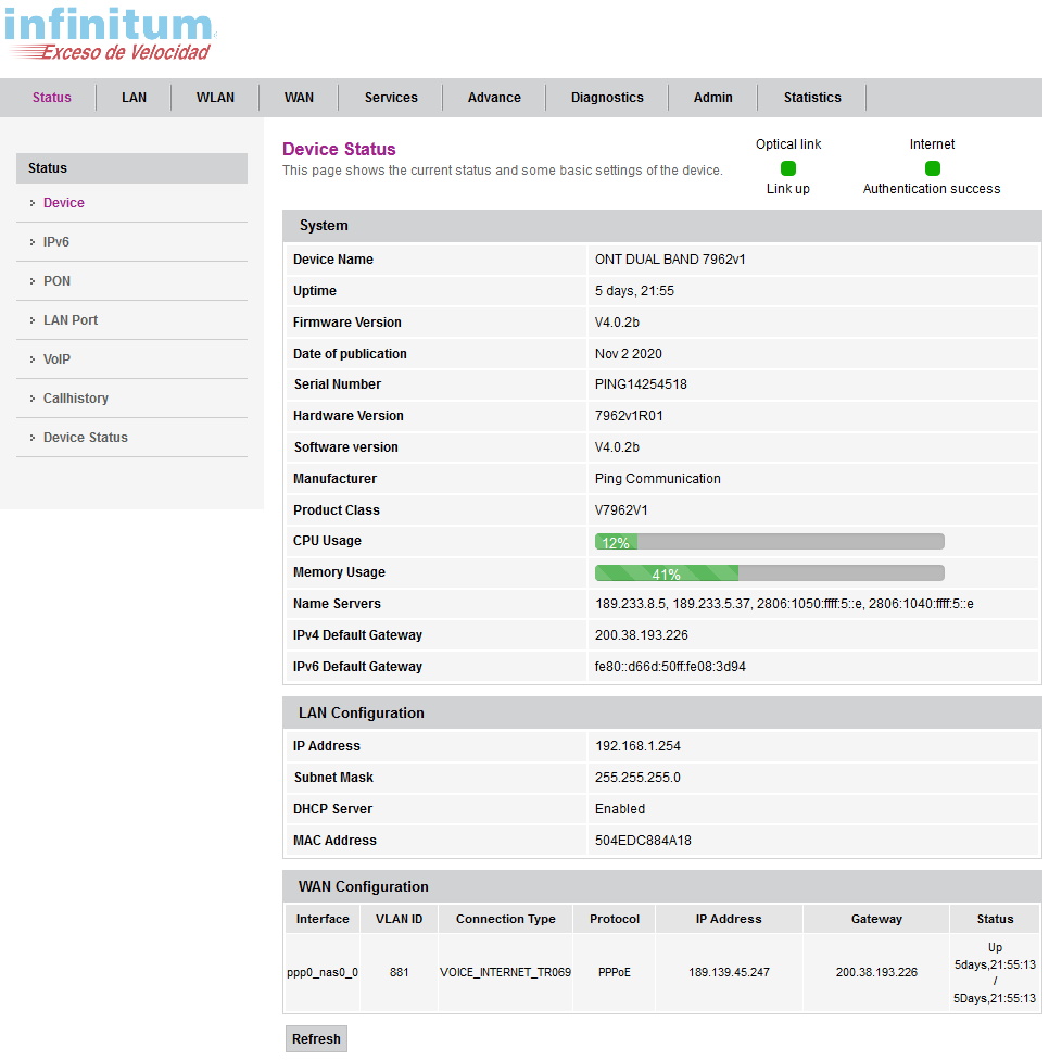 Passenger wrote: Hoy me cambiaron el ONT doble banda que tenia (un Nokia), por uno de marca Ping porque un iPad no se conectaba a 5ghz. Jamás había escuchado de ellos y no encuentro información en línea, el modelo es V7962.
