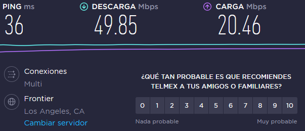 Sabe si a mi me inyectan publicidad, no uso los dns default de infiernitum y con el ublock origin y ghostery no hay mucho que pase de publicidad en general en el firefox, y ciertamente no me ha tocado ver publicidad en el foro, lol. Ahora, a mi también me llegaron mensajes de que iban a cambiarme a fibra, pero si tardaron un rato en hacerlo, hace como medio año hicieron los tendidos de fibra óptica en los postes, y apenas hace 2 meses me empezó a llegar lo del cambio, hasta que hace casi dos semanas vinieron a cambiar el cableado y el equipo, si, es fibra hasta tu equipo ONT, nada de fibra al poste, y de ahí cobre a tu casa. Yo tengo el paquete de 389 pesos, antes con el vdsl me daban 17-18mb de bajada y como 3mb de subida, con el cambio al principio me dieron 20/10 un tanto inestables y con problemas de conexión con ciertos servidores (la pagina de anandtech no abría, mandaba error 505 o algo así), pero ya a la semana fue mejorando, tuve un par de desconexiones de unos 20 minutos, imagino que me patearon a un lugar mejor, y después de varios cambios, ahorita ando en algo así como 50/20, dependiendo del servidor. También noté que tengo mejor conexión y ping con servidores en california que en texas. Mis pings en el dota no mejoraron mucho, mas bien me cambiaron de región, pase de 70 US east/100 US west a 98 US east/57 US west.