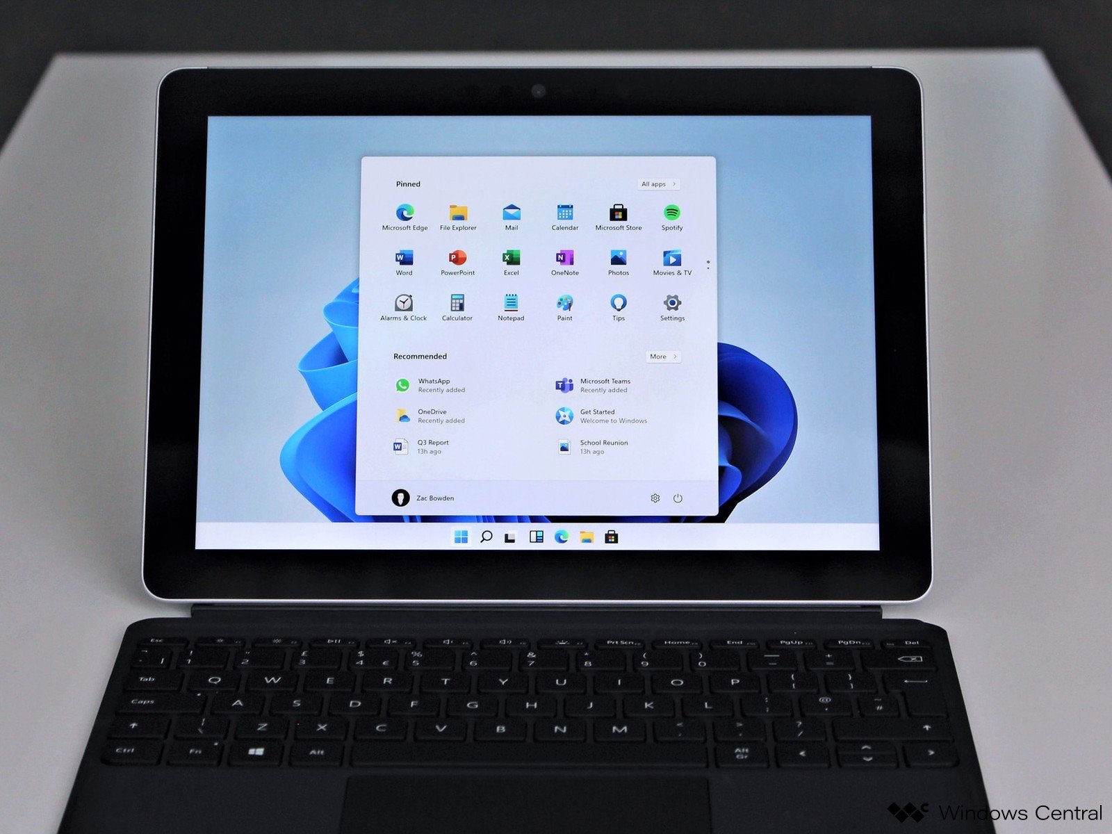 Lo primero que notamos es que el menú inicio y barra de tareas han cambiado. El menú ahora está centrado y en la barra de tareas hay opciones para meter widgets (los cuáles fueron presentados en algún momento en Windows 8 y nunca despegaron).