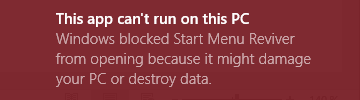 Al intentar instalar un remplazo del menú, el Startup Menu Reviver, salía una notificación arguyendo que dicho programa “podría dañar tu PC o destruir información”.