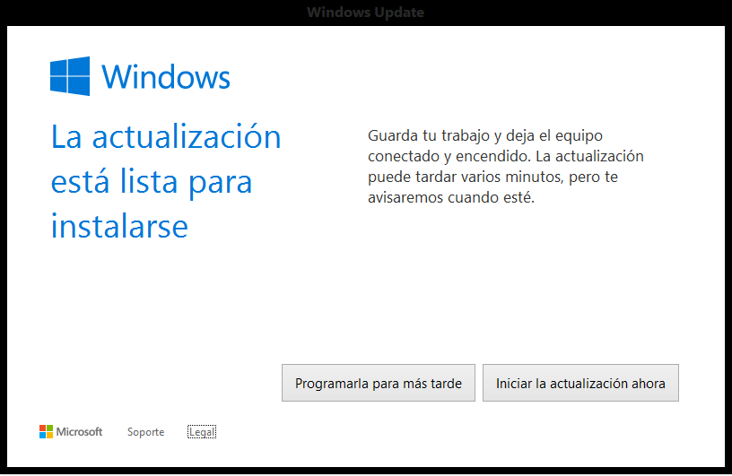 Aqui la ventanita que me salto cuando por fin estuvo lista la actualizacion: