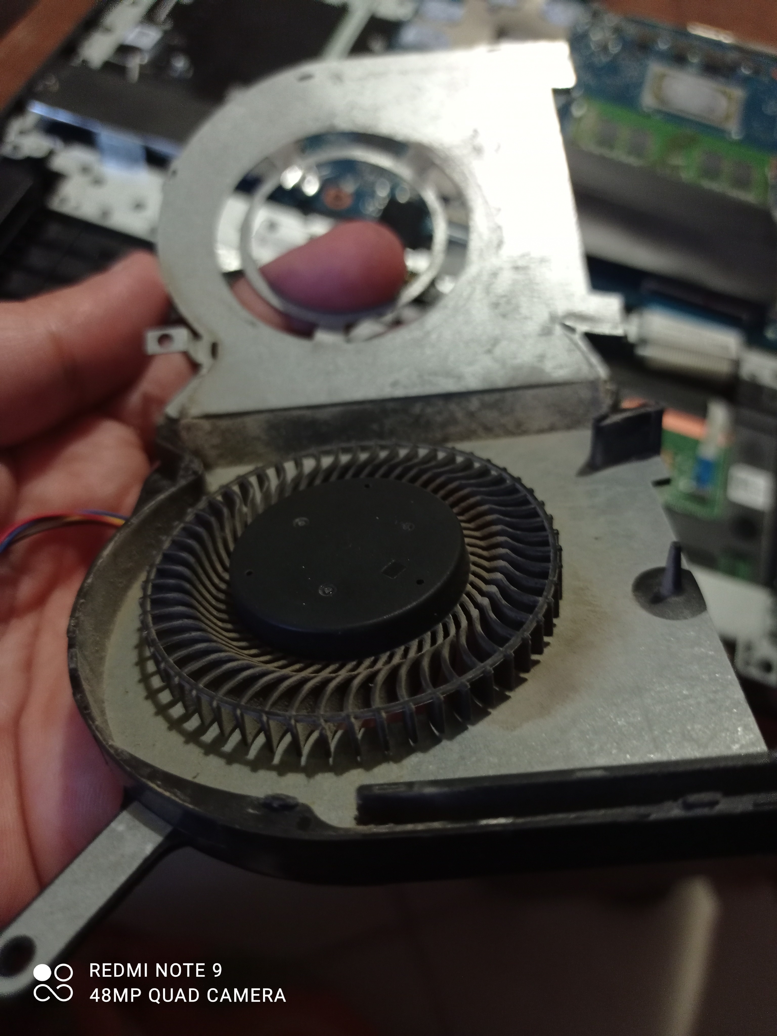 Despues de desmontar la parte de la refrigeración, toca limpiar la pasta termica vieja y abrir los ventiladores para poder limpiarlos más profundo.