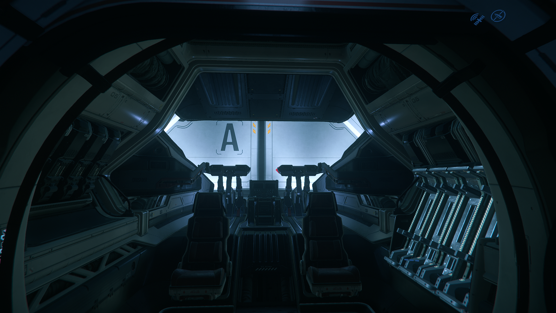Aca, ya tomando el control de la nave, tienes que encenderla manualmente, activar los motores y despues pedir, mediante las propias pantallas y menus que tienes enfrente, al control de la base, que te abran las puertas del hangar donde estas...al principio es algo confuso, pero cuando le agarras la onda es muy satisfactorio y como decia anteriormente, hace que te sientas "ahi"...quien sabe si ya tenga o en un futuro le pongan compatibilidad con algun sistema de VR, le daria otro giro esa capacidad.