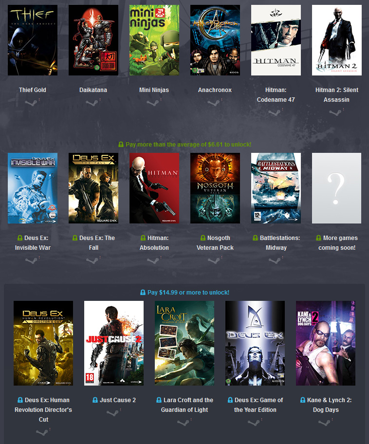Y del bundle, pues si no tienes ninguno del primer escalón, un dólar por el Thief y el Hitman 2 no está mal. De ahí para arriba... no, la verdad no se ve bien.