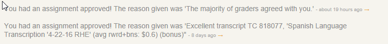 Lo que si se me hace "pesado" es que por default los trabajos son "verbatim" (salvo orden contraria), por lo cual hay que poner extra atención a las muletillas y demas oradores, ademas de realizar marcaciones especiales en dichos casos. En otras palabras, casi haciendo el trabajo de corrector tambien, en orden de obtener una calificación alta.