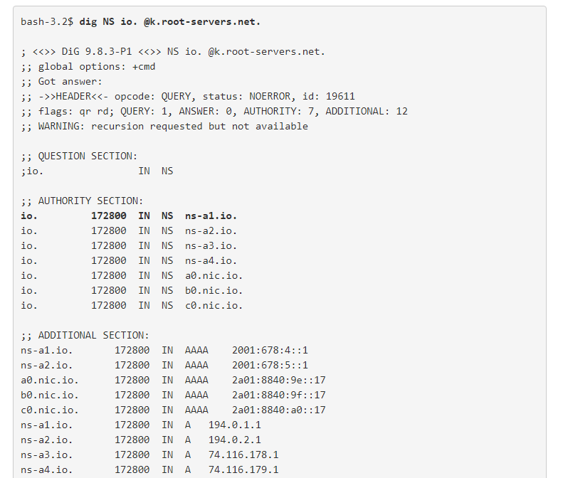 Al comprobar si su dominio recién comprado ns-a1.io seguía funcionando como nameserver se dio cuenta de que efectivamente así era.