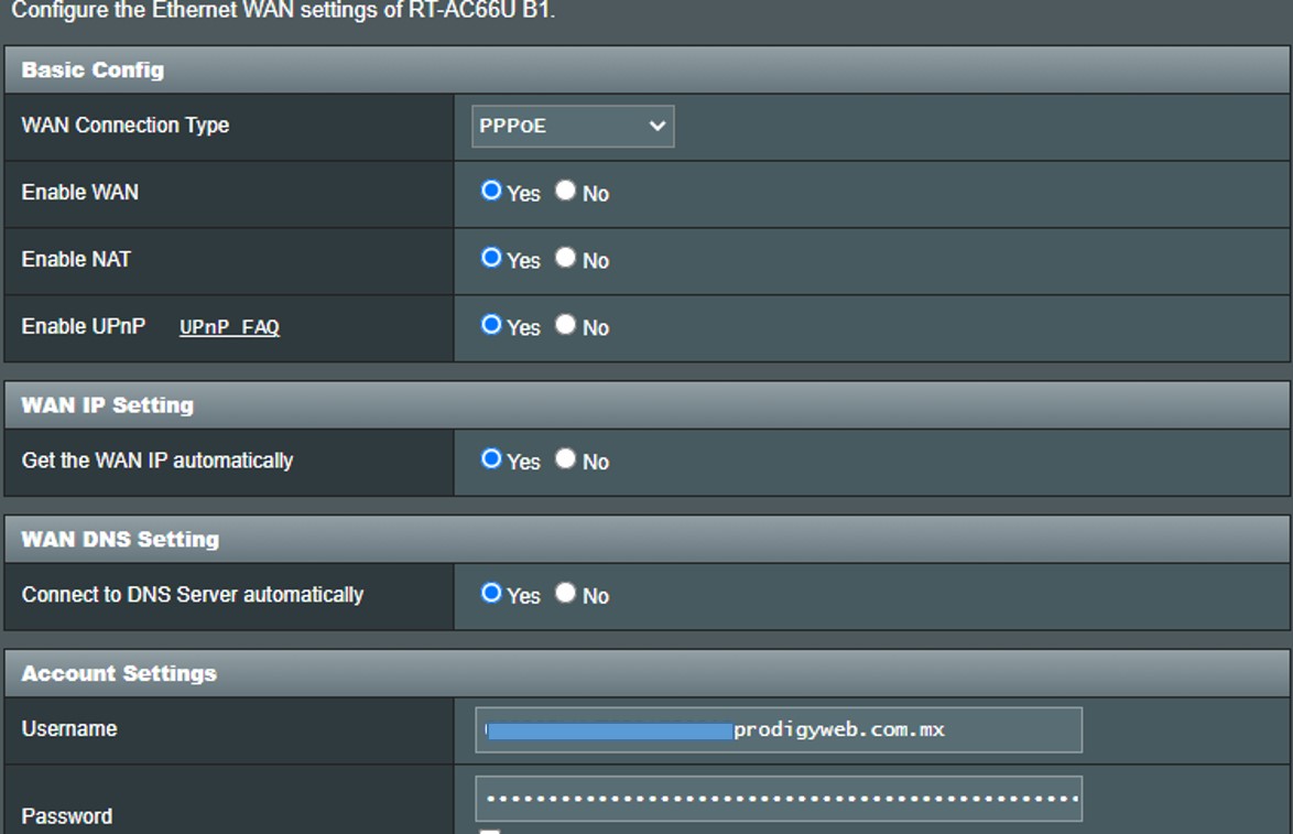 Eso de arteriscos no siempre funciona. Hay varios routers que muestran X password pero esta como un especie de obsfuscamiento.TheJP wrote: Les comento que me encontre esta pagina superuser.com/questions/777548/how-to-reveal-pppoe-password-behind-asterisk-in-my-router y pude ver la contraseña de la configuracion PPPoE en el modem de Telmex, es una contraseña de 64 caracteres sin embargo configure el modem ASUS con ese usuario y contraseña y no tengo internet