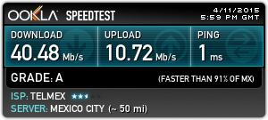 Lo que sí hay que tramitar en la tienda Telmex es la solicitud para subir a los 40 megas, que en mi caso fué un poco tardado pero finalmente se autorizó y así es como queda la conexión:
