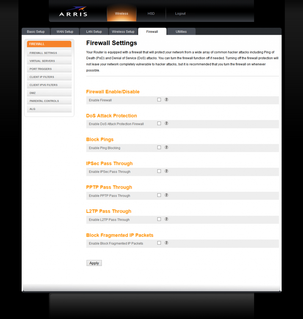 Hola, yo tenía el mismo problema con un PS3 y nunca quedó resuelto al 100%. En efecto el PS usa paquetes fragmentados y el Arris los menciona en su firewall pero por alguna razón no funcionan bien. Al final encontré que conectar el PS3 de manera alámbrica por Ethernet funcionaba mejor aunque también reportaba que la conexión no era perfecta.