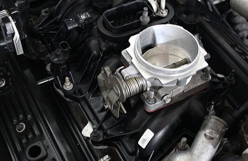 Aca la tapa superior del multiple de admision instalado, junto con el cuerpo de aceleracion montado: